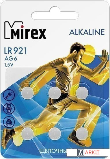 Markit » Батарейки, аккумуляторы, зарядные » Батарейка Mirex LR921 (AG6) блистер 6 шт. 23702-LR921-E6