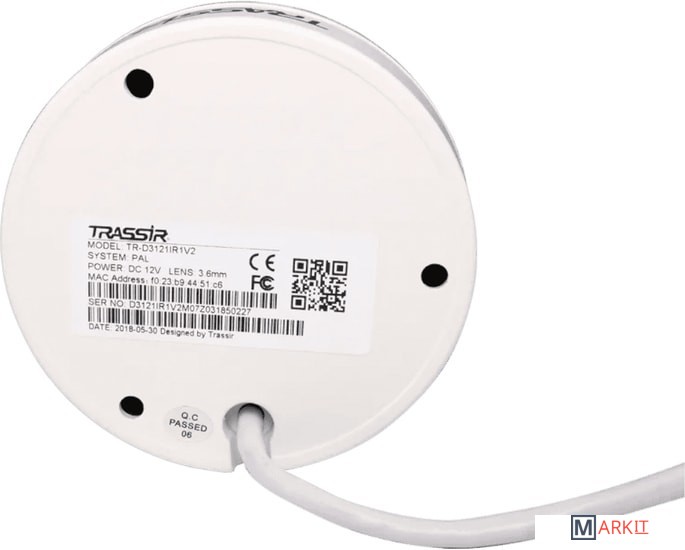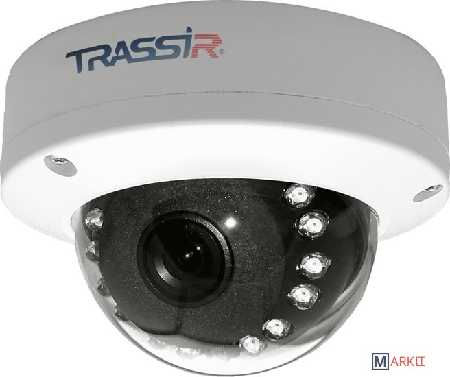 Компактная (менее 10 см) 2Мп (1920×1080) IP-камера TRASSIR TR-D3121IR1 v4 (2.8 мм) адаптирована к круглосуточной и круглогодичной эксплуатации на улице: защита корпуса от влаги и пыли отвечает требованиям стандарта IP66, диапазон рабочих температур — -40 °C… +60 °C, дальность действия встроенной инфракрасной подсветки — 15 м.
