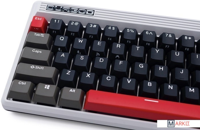 КЛАВИАТУРА БЕЗ КИРИЛЛИЦЫТип: линейныйСила нажатия: 45 грамм (легкие)Длина пути: 4 мм (2 мм до срабатывания)Помимо подключения через стандартный кабель USB клавиатура может работать в одном из двух беспроводных режимов — Bluetooth 5.0 или беспроводном соединении 2.4G, обладающем меньшей, по сравнению с Bluetooth, задержкой. Переключение между режимами осуществляется с помощью специального слайдера в верхней правой части. Благодаря беспроводному подключению вы также можете подключить клавиатуру к устройствам на iOS или Android.Два кабеля в комплекте - Вы можете использовать как USB Type-C, так и старый добрый USB Type-A.Мультимедиа и дополнительные FN функции - Клавиатура поддерживает сочетания клавиш для регулировки громкости и управления музыкой. Также имеется возможность отключить кнопку Windows.Durgod Zeus Engine позволяет создавать макросы. Можно создать свои мультимедиа, функциональные макросы и многое другое. ПО не поддерживается на Mac OS.Прочные регулируемые ножки позволят немного приподнять клавиатуру и изменить её угол наклона для более комфортной печати, а их прорезиненное дно не даст клавиатуре сдвинуться с места.Функция Full N-key Rollover по USB (NKRO) - Позволяет нажимать одновременно неограниченное количество клавиш. Для печати идеально подойдет как 6KRO, так и NKRO, независимо от вашей скорости. Для игр NKRO будет плюсом и неважно, нажимаете ли вы больше 6 кнопок или нет, поскольку, играя в любую игру, вы можете случайно нажать пару лишних клавиш и из-за этого клавиатура может не среагировать на нажатие, которые вы хотели совершить изначально. Осторожно, старые BIOS-ы могут не реагировать на клавиатуру из-за NKRO.
