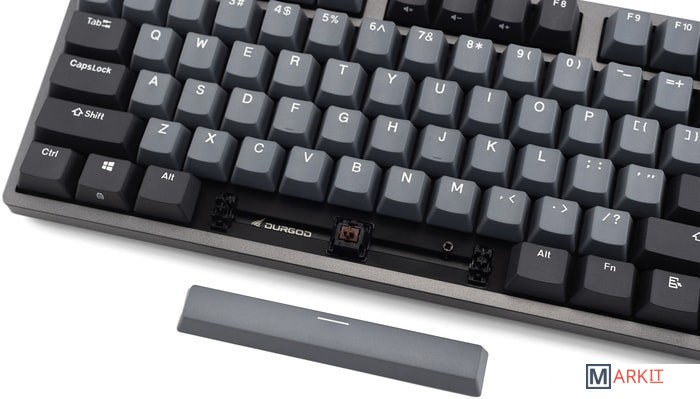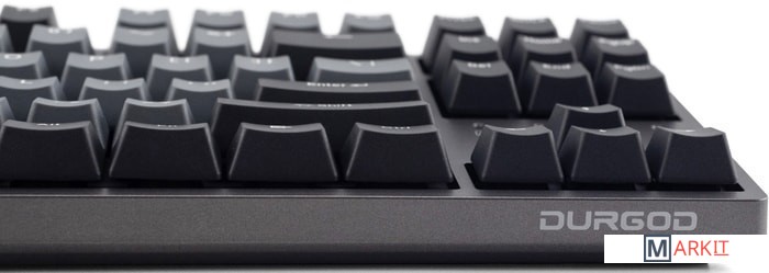 КЛАВИАТУРА БЕЗ КИРИЛЛИЦЫТип: тактильный Сила нажатия: 55 грамм (средние)Длина пути: 4 мм (2 мм до срабатывания)Клавиатура поддерживает сочетания клавиш для регулировки громкости и управления музыкой. Также имеется возможность отключить кнопку Windows.Два кабеля в комплекте - Вы можете использовать как USB Type-C, так и старый добрый USB Type-A.Durgod Zeus Engine позволяет создавать макросы. Можно создать свои мультимедиа, функциональные макросы и многое другое. ПО не поддерживается на Mac OS.Канавки для укладки кабеля - Расположены с обратной стороны клавиатуры и позволяют выводить кабель в трёх направлениях — слева, справа и посередине.Двойные регулируемые ножки предоставляют целых три варианта угла наклона клавиатуры для более комфортной печати, а их прорезиненное дно не даст клавиатуре сдвинуться с места.Позволяет нажимать одновременно неограниченное количество клавиш. Для печати идеально подойдет как 6KRO, так и NKRO, независимо от вашей скорости. Для игр NKRO будет плюсом и неважно, нажимаете ли вы больше 6 кнопок или нет, поскольку, играя в любую игру, вы можете случайно нажать пару лишних клавиш и из-за этого клавиатура может не среагировать на нажатие, которые вы хотели совершить изначально. Осторожно, старые BIOS-ы могут не реагировать на клавиатуру из-за NKRO.