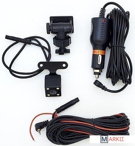 - Видеорегистратор;- Камера заднего вида;- Кронштейн;- Кабель с адаптером;- Руководство по эксплуатации. |